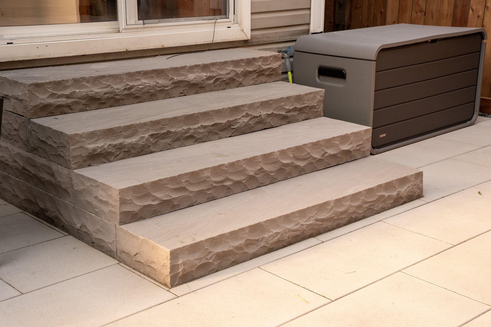 The project features premium Unilock stone, providing a sleek and durable surface that ties the entire space together. The precision-cut pavers create clean lines and a modern flow throughout the backyard. Known for their strength and long-lasting finish, Unilock stones add both elegance and practicality — making the area perfect for entertaining or everyday enjoyment.